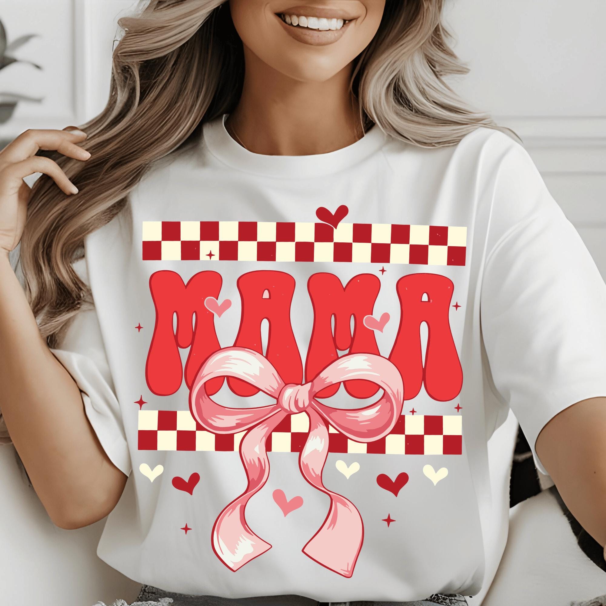 Mama Valentine PNG | Mama Bow Design | Valentine Mama Shirt PNG | Gingham Mama Graphic | Digital Download