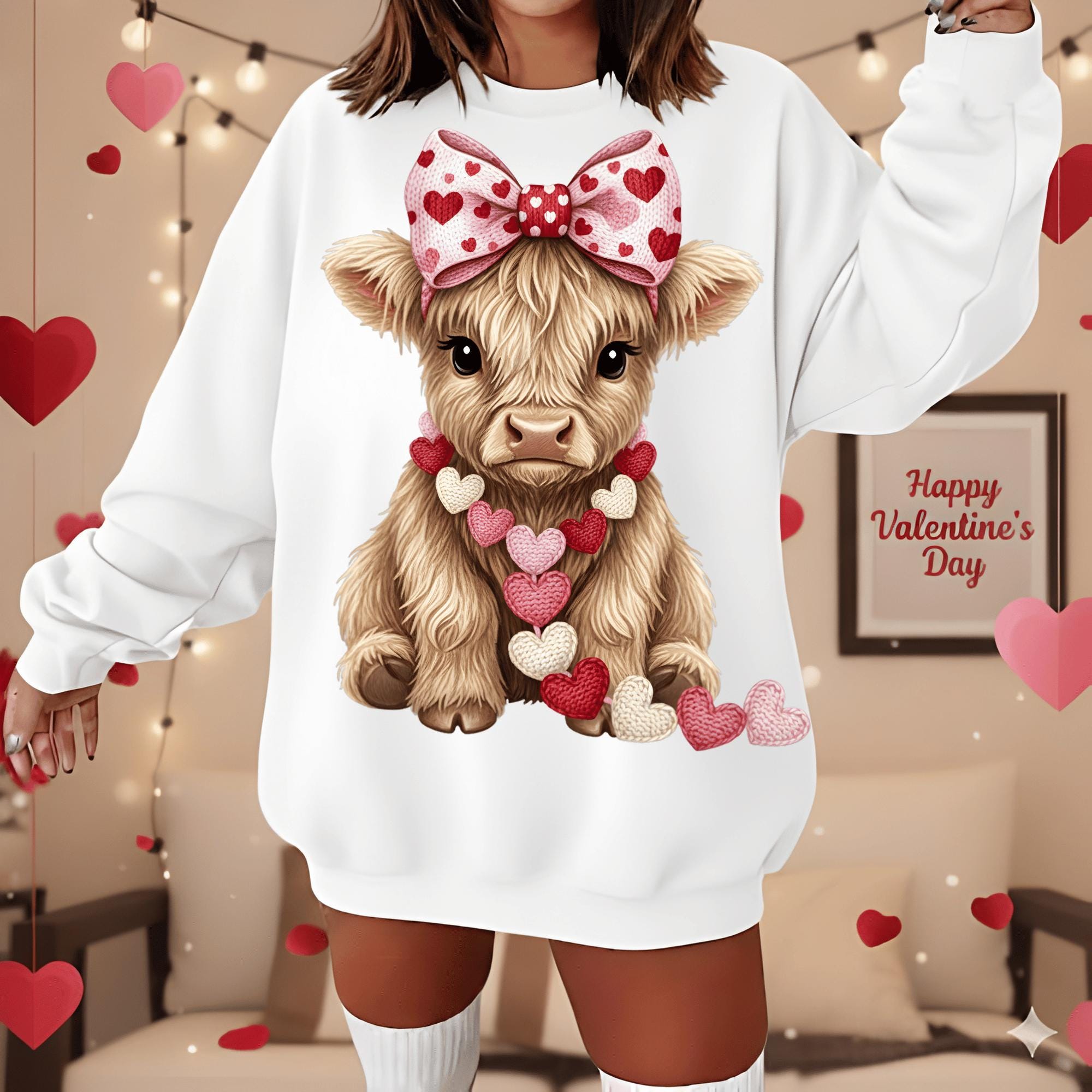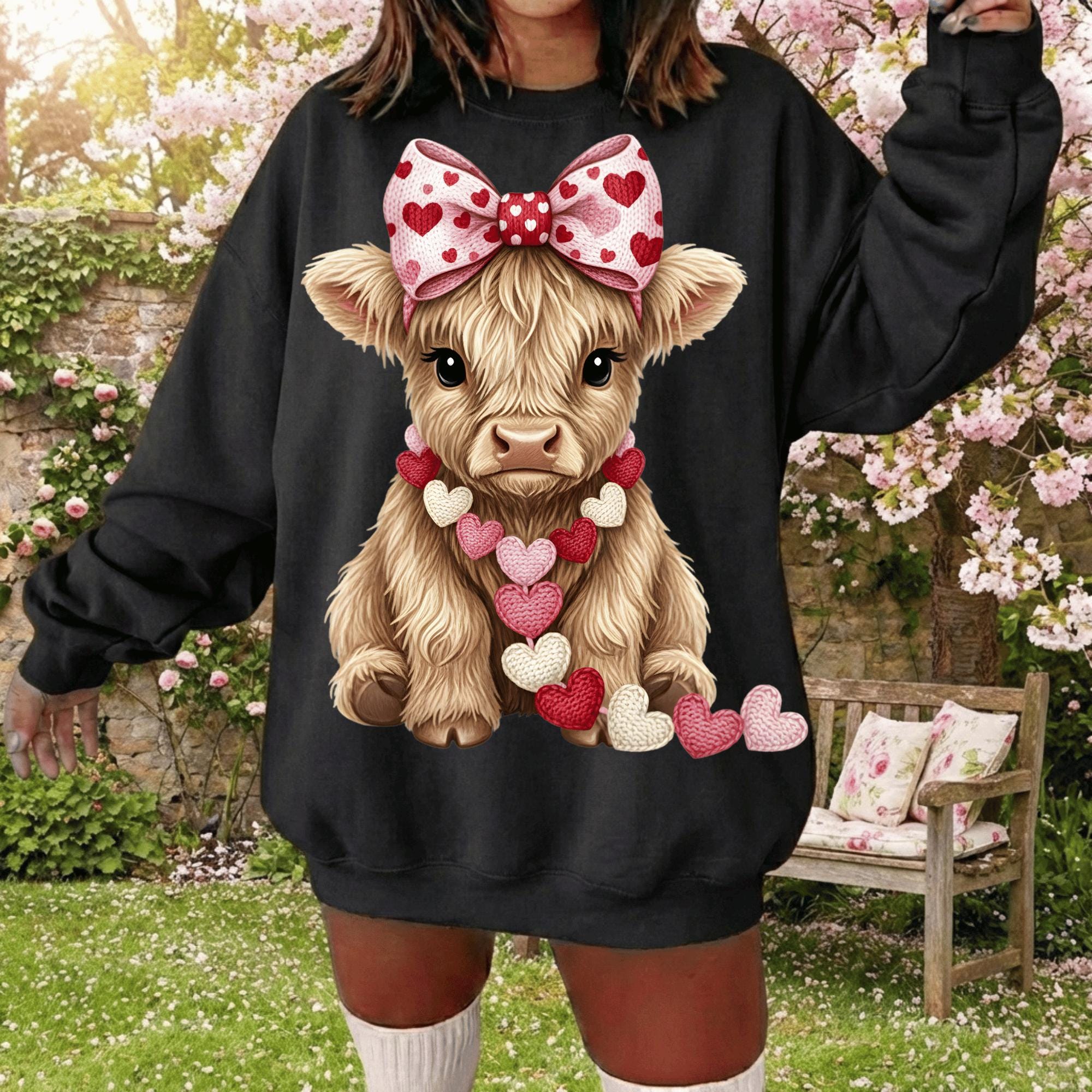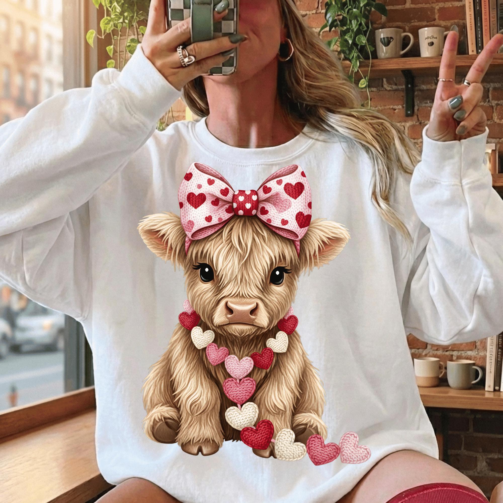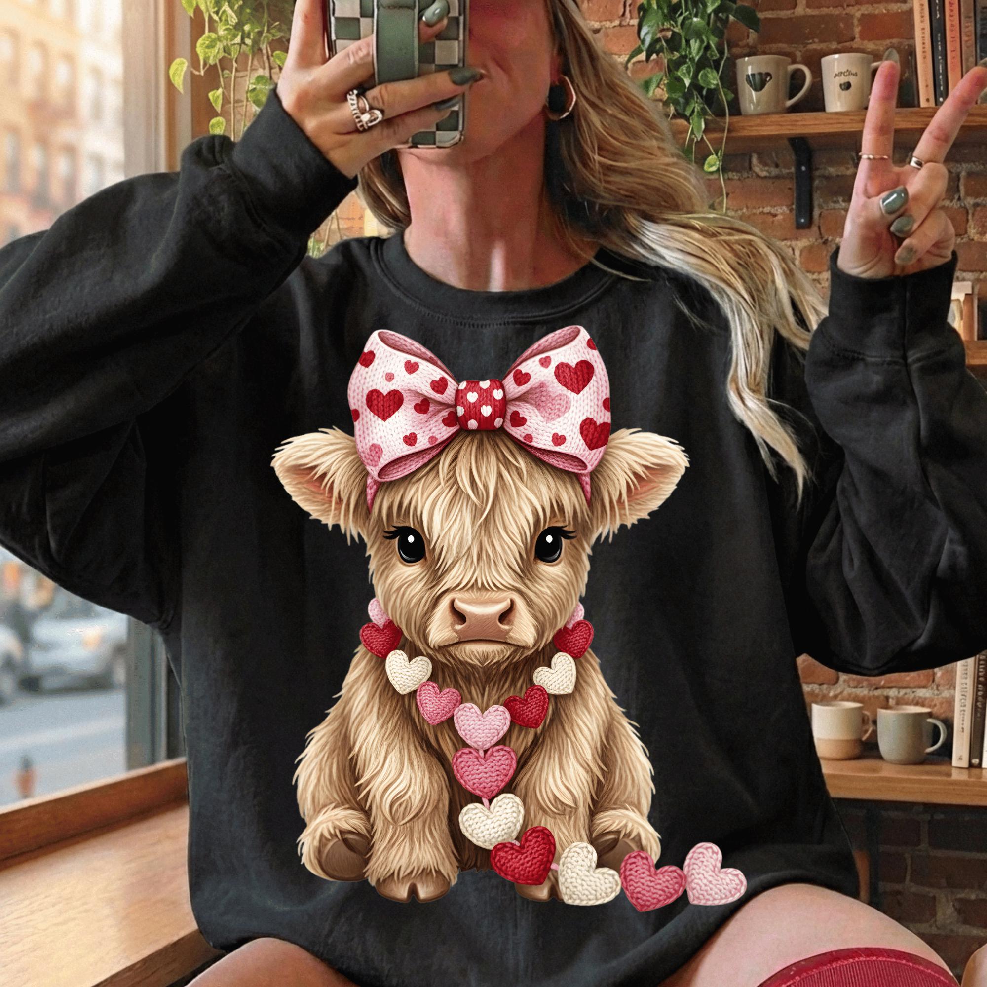 Valentine Highland Cow PNG | Farmhouse Sublimation (Digital Download)