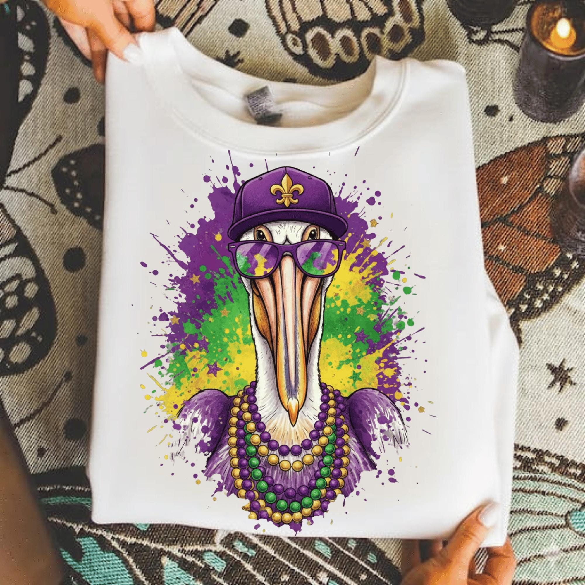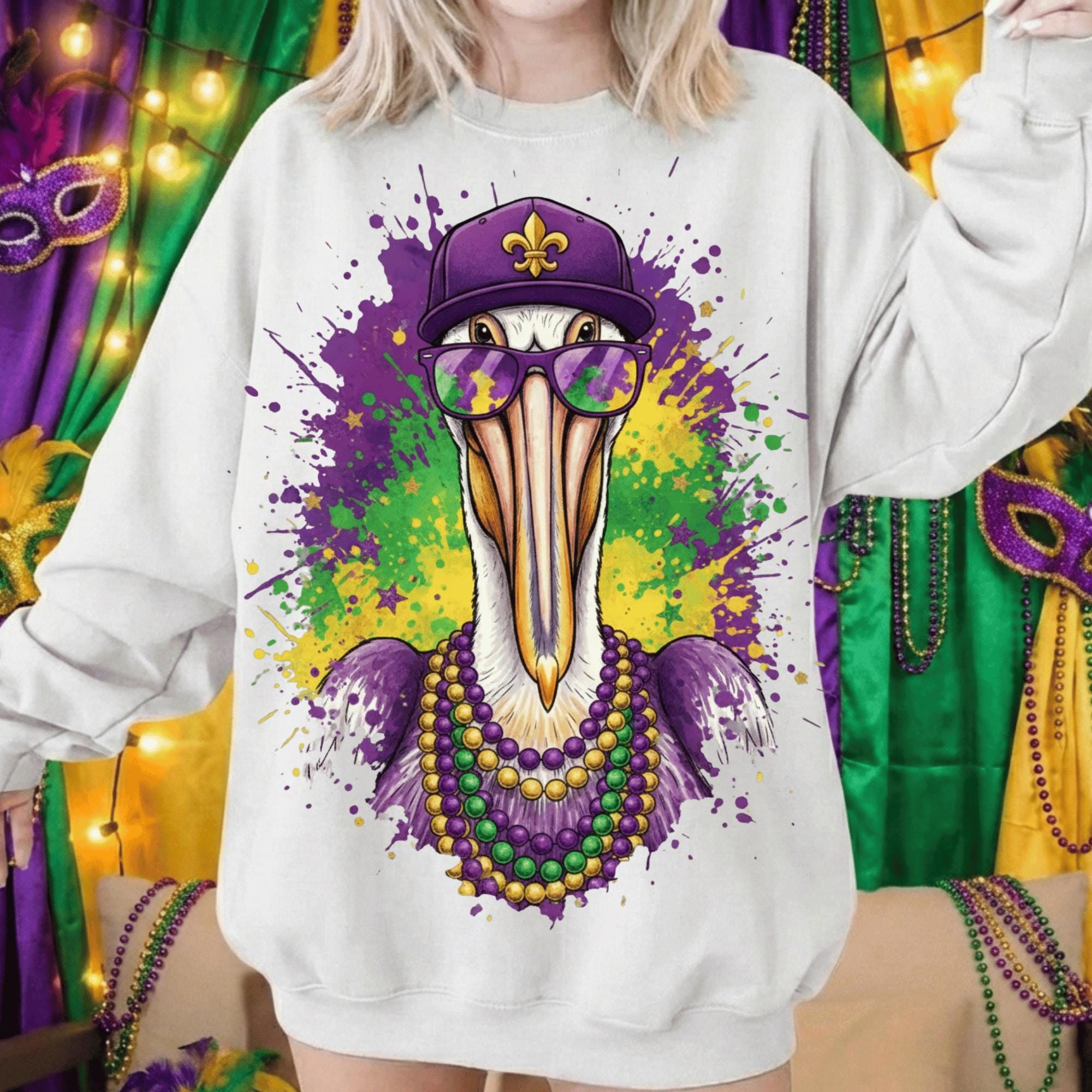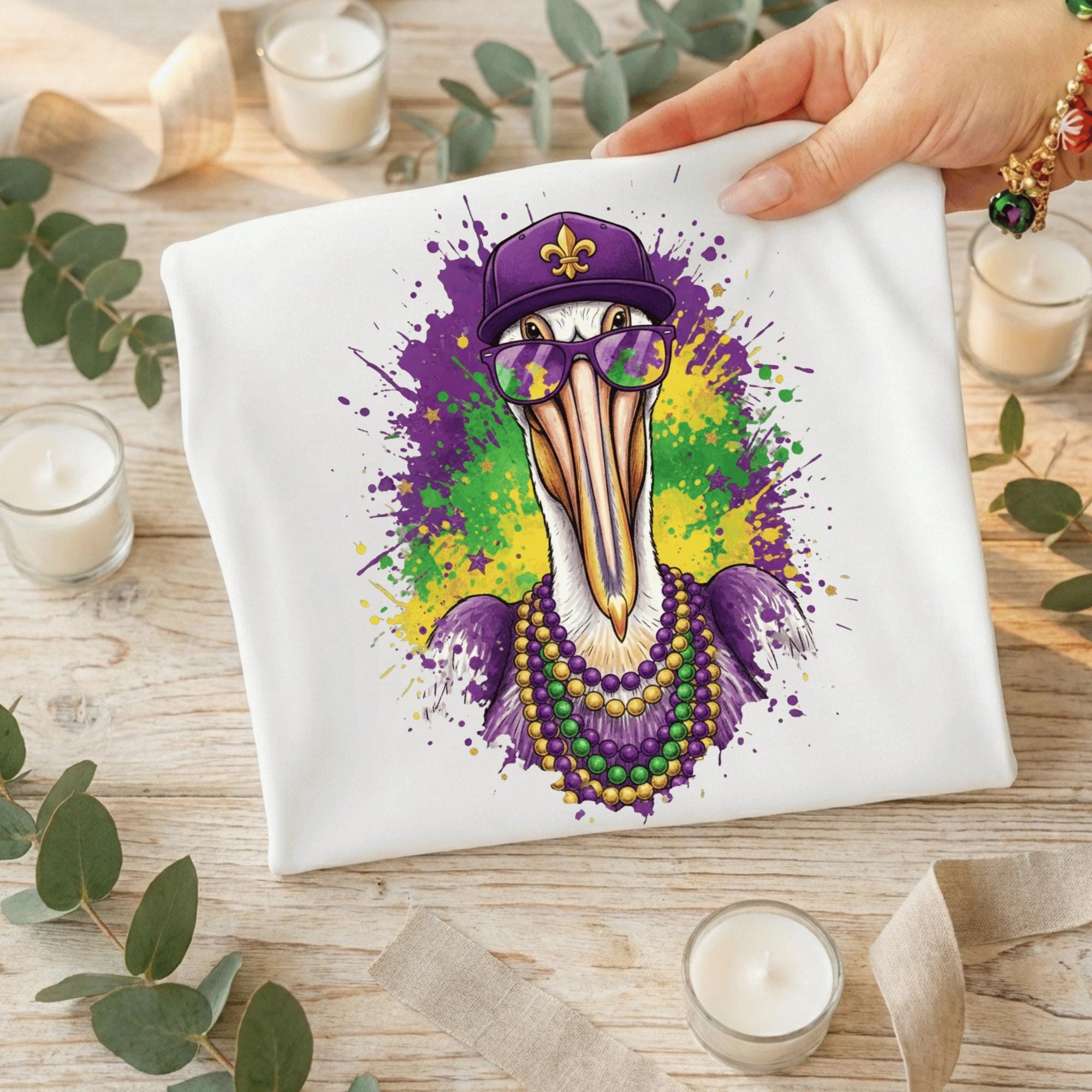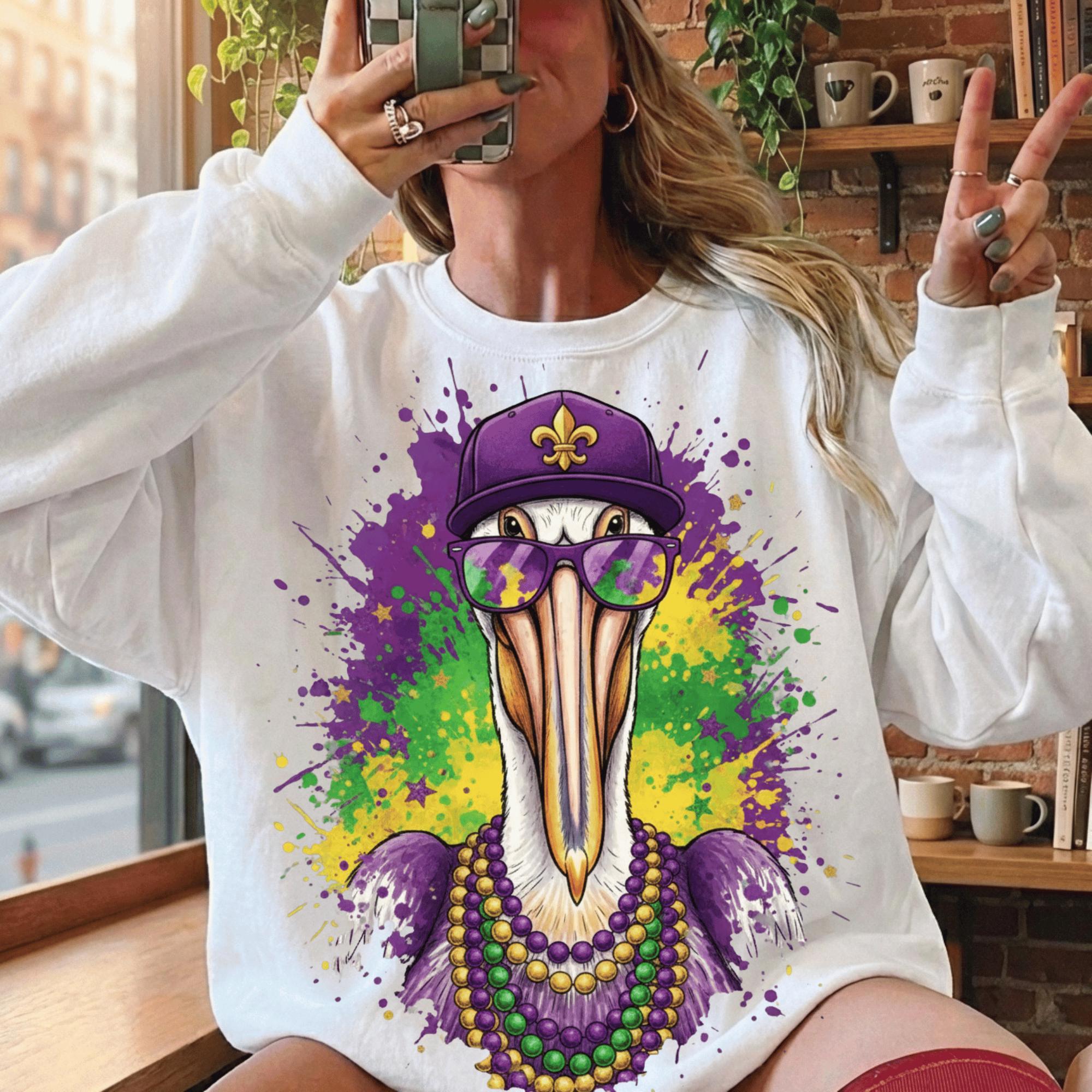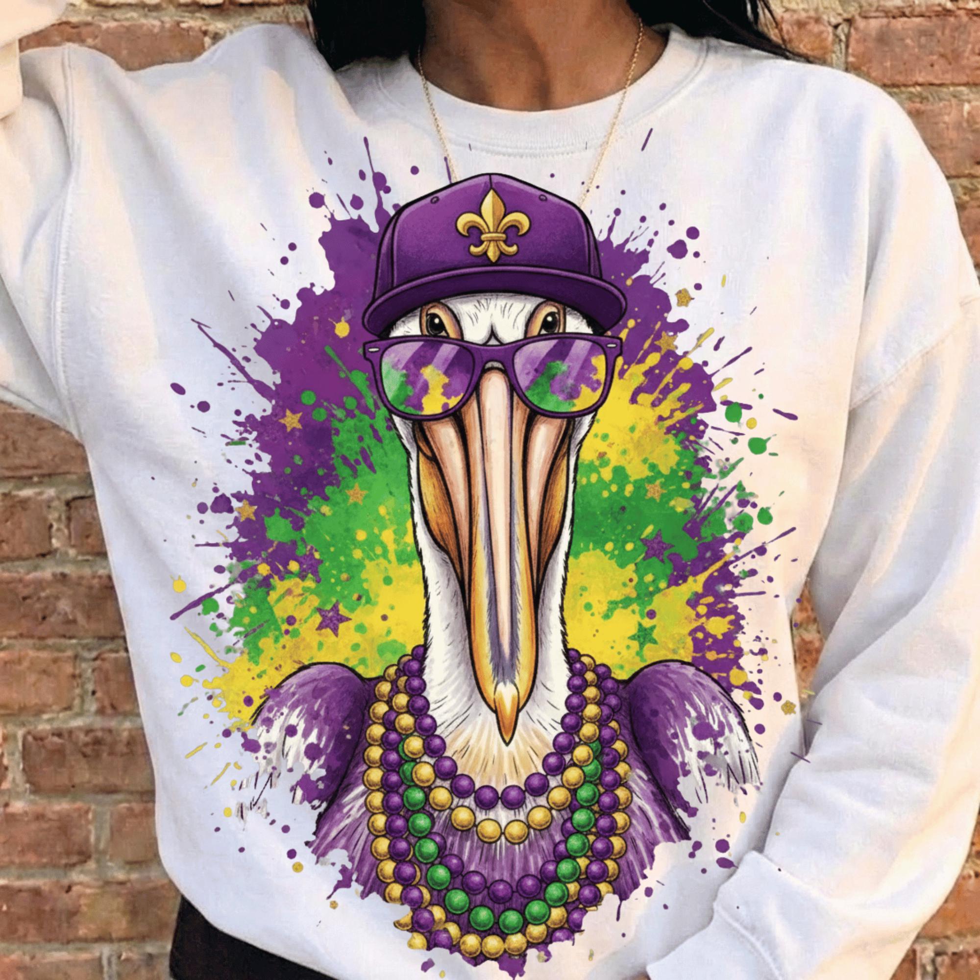 Perfect for buyers searching for Louisiana Mardi Gras designs, New Orleans pelican art, or fleur de lis PNG files.